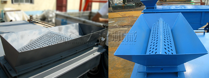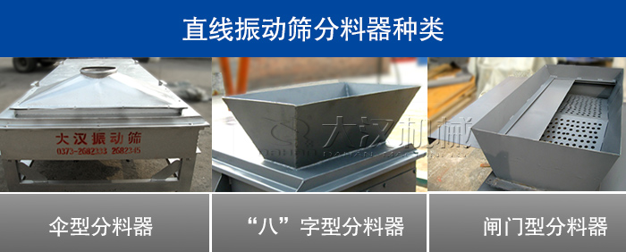 這兩種是分料器的傳統形式,在投料量不是很大、產量要求不高的時候直線篩出料口多加裝這種分料器,但是旦投料量過大就難以起到預期的分料作用。