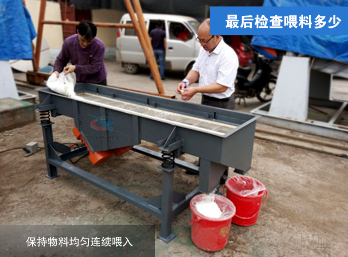 ④振動篩在喂料不均勻時,無法受到均勻的激振力作用,因此也會導致直線振動篩篩面物料流動異常的現象。保持物料均勻連續喂入,喂料不可過多過少導致篩箱負荷不平衡。