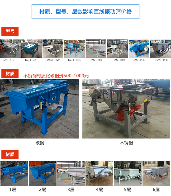 3、另外,直線振動篩可安裝1-6層篩網,層數越高,價格會越貴。